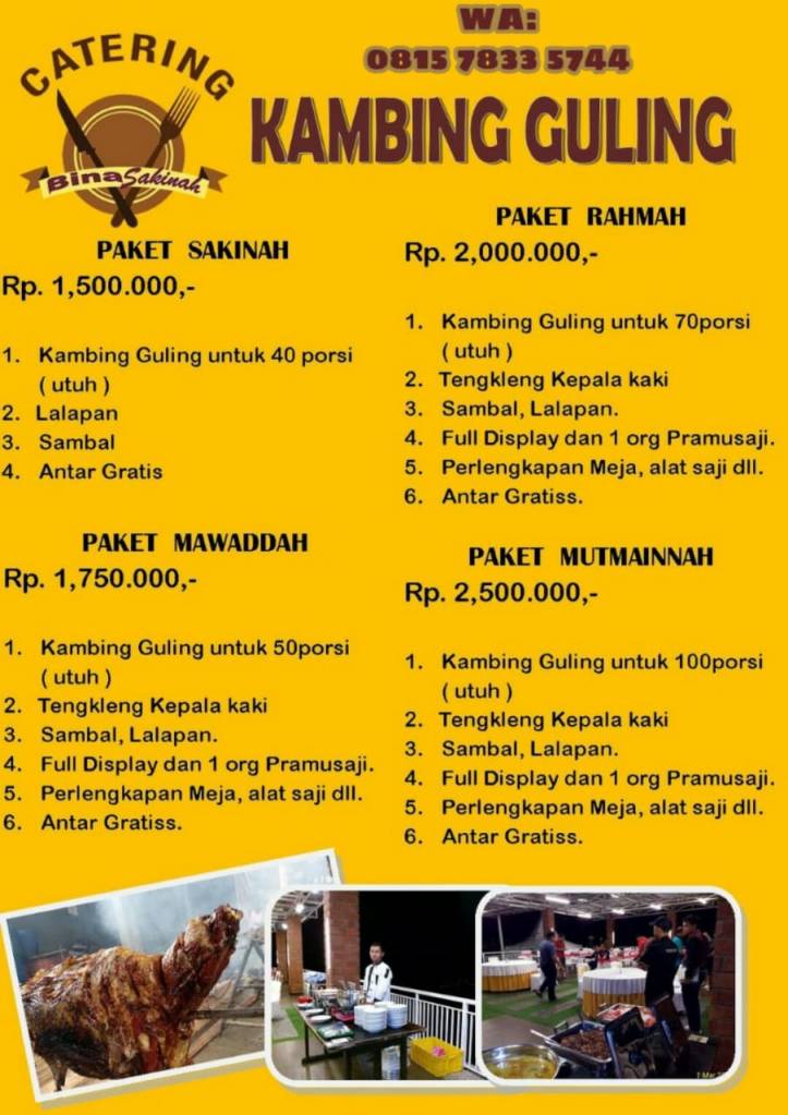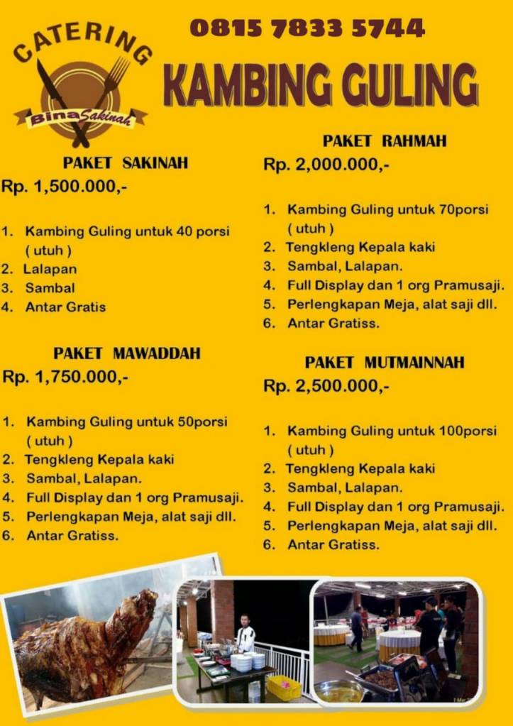 Pesan Kambing Guling atau Aqiqah Murah di Jogja. Mudah dan banyak promo setiap hari. Pesan Catering Catering murah dengan paket diskon terbaik di BINA SAKINAH JOGJA. Mau Pesta atau Aqiqah? Bina SakinahYuk! Transaksi Aman dan Mudah. Berbagai Pilihan Paket, dengan Biaya terjangkau, Budged biSa Menyesuiakan.
